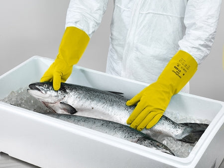 - Lightweight reusable, nitrile gloves designed specifically for food processing and handling
