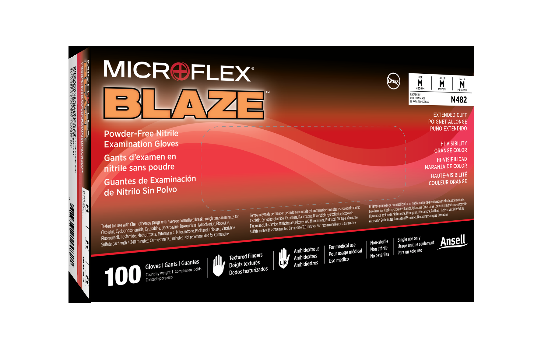 - High visibility: MICROFLEX® Blaze® N48 are robust, high-visibility orange nitrile medical exam gloves that protect hands in demanding environments — their high-visibility orange color makes them easy to see in emergency situations